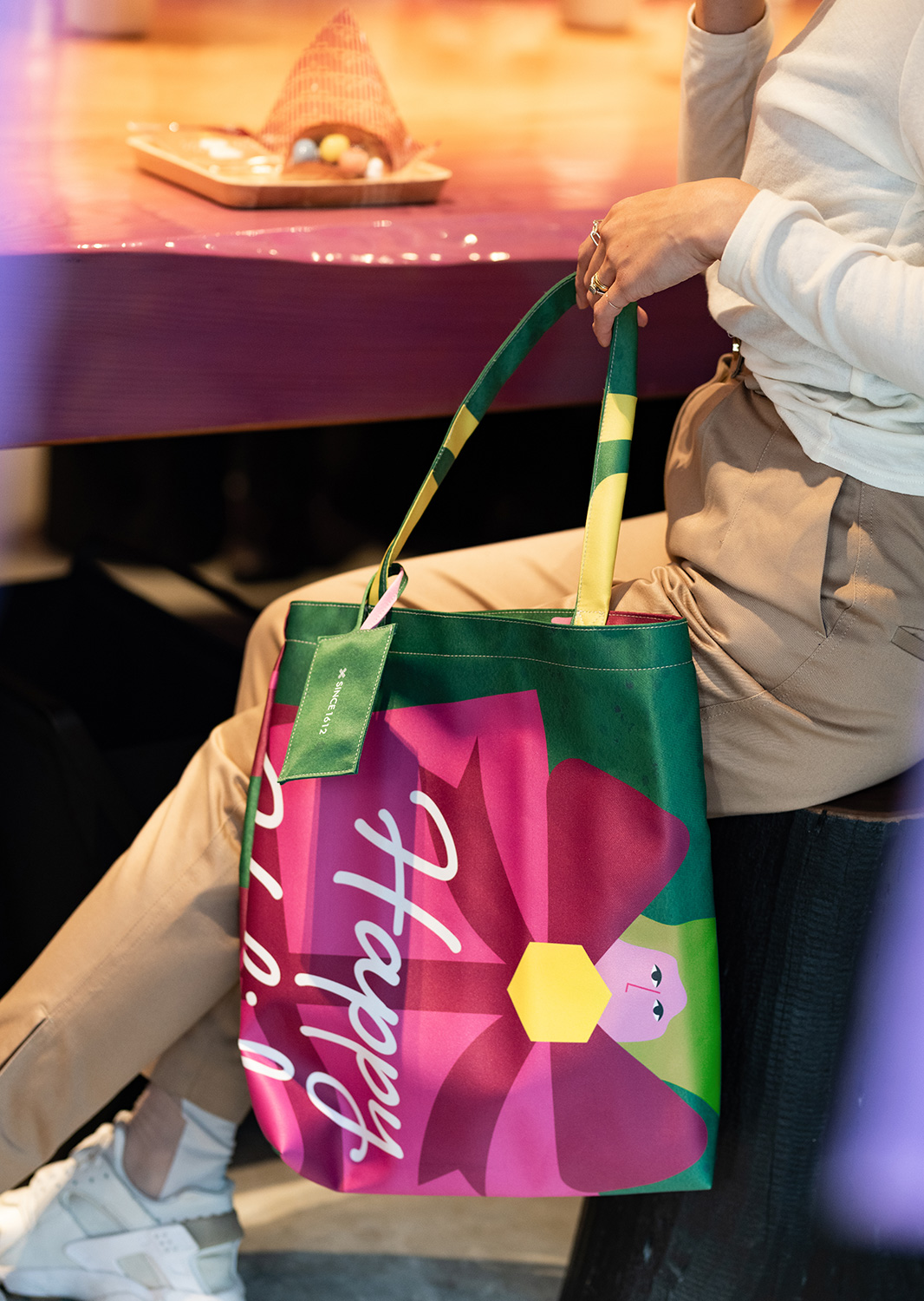 また、両面印刷の貼り合わせ生地のため、バッグ内側も可愛いデザインがチラリと見え隠れします。