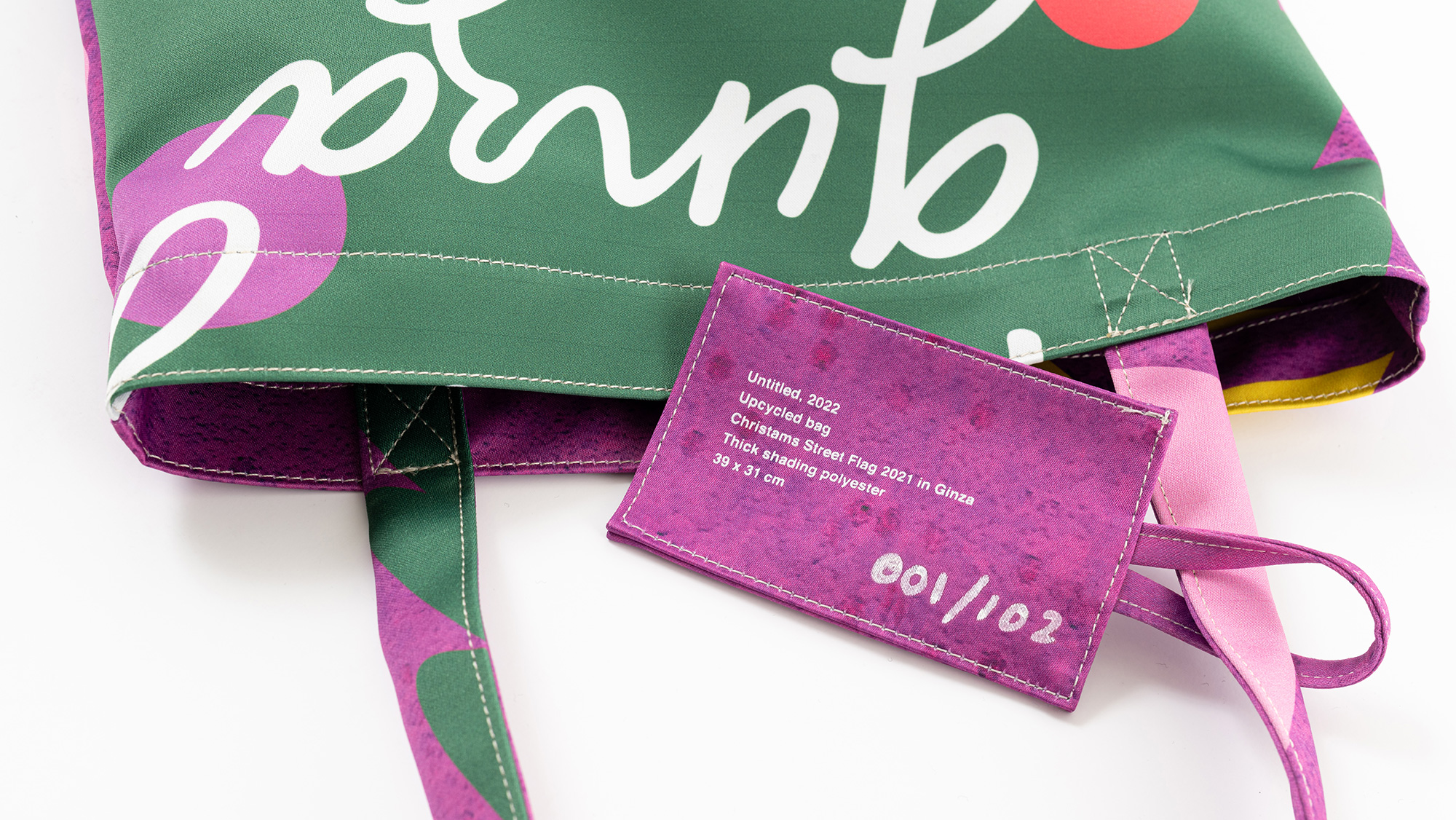 さらに、フラッグバッグは街頭フラッグの特性上、生産数が限られているため、それぞれのバッグにはエディションナンバーが手書きで記されています。